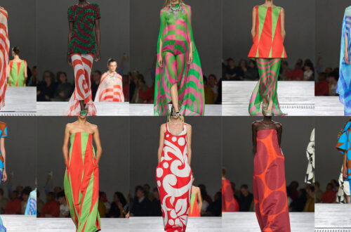 A coleção Gabriela Hearst Outono/Inverno 2025 se inspira no trabalho da arqueóloga Marija Gimbutas. A designer uruguaia foca na importância das mulheres na Velha Europa e suas conexões com a terra. Sendo assim, vemos na passarela símbolos como espirais, ziguezagues e formas sinuosas, que representam a criação, a fertilidade e a força feminina. Destacam-se as cobras sagradas, que aparecem em jacquard de cashmere, jeans reciclado e couro bordado à mão. Um casaco de cashmere shearling, com linhas pretas, e um vestido de nappa com tubos de couro em padrões antropomórficos traduzem esses elementos para a moda contemporânea. A coleção combina a força feminina com a alta costura, trazendo silhuetas marcantes…