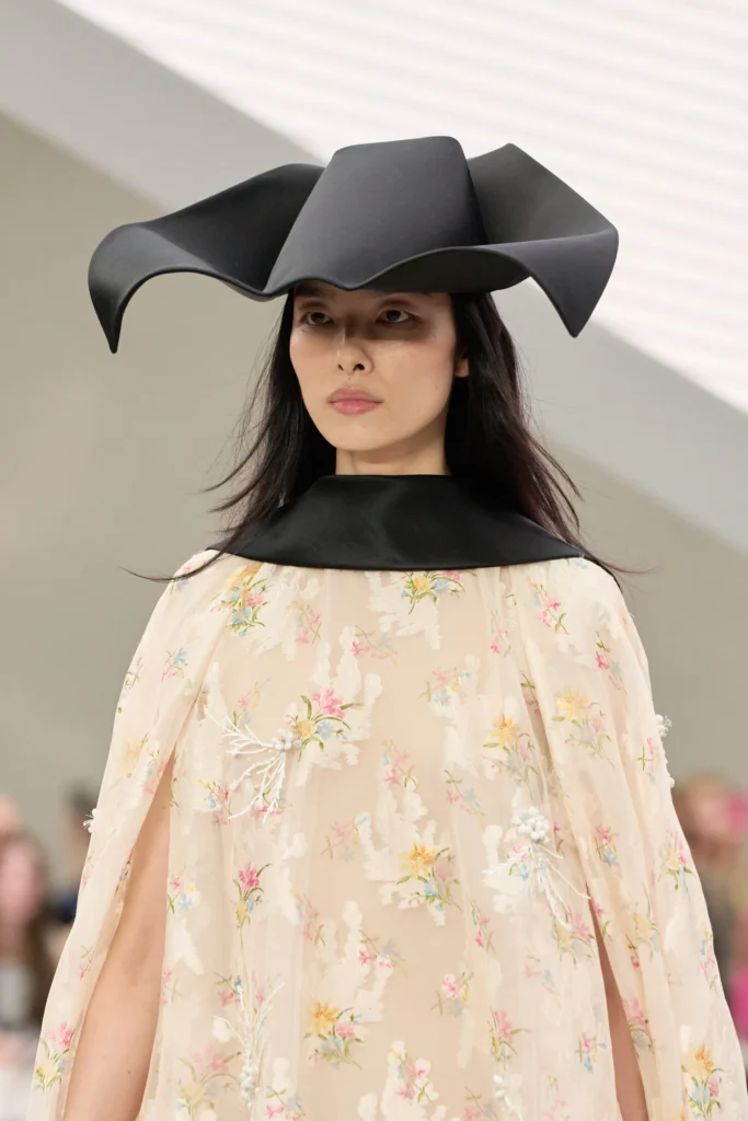 O designer Stephen Jones contribuiu na coleção com chapéus que faziam clara referência ao trabalho de John Galliano na maison, demonstrando o respeito de Anderson pelos seus predecessores.