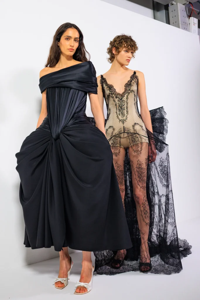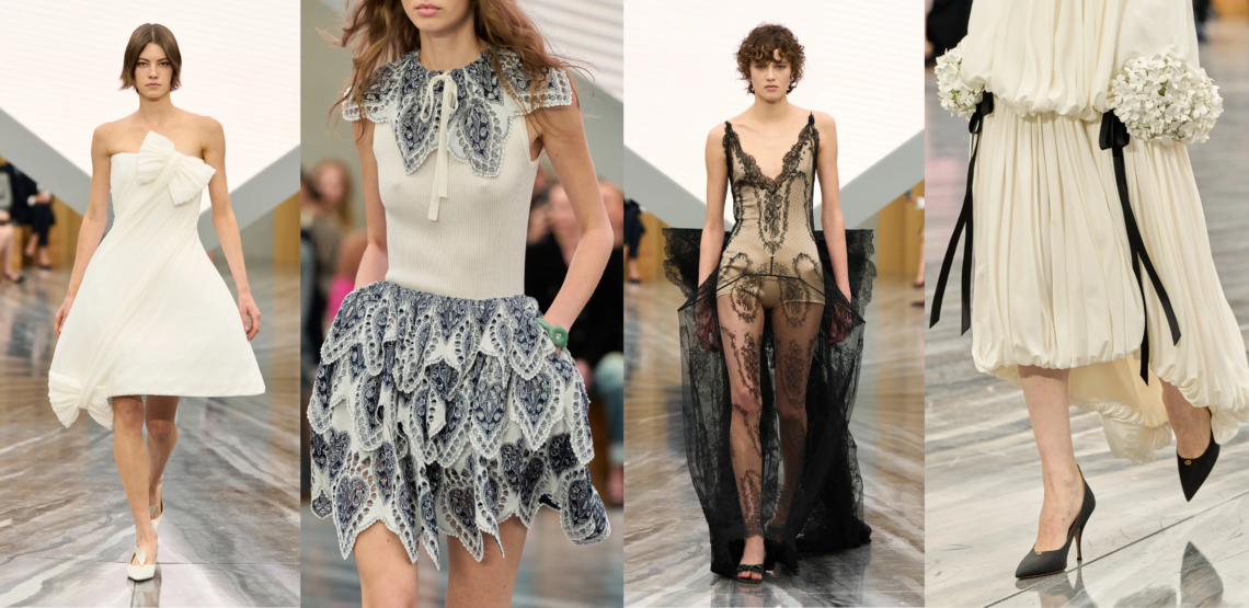 Foram apresentados 74 looks que navegaram entre o teatral e o comercial. Vestidos estruturais com volumes inspirados em panniers do século XVIII dividiram espaço com peças mais acessíveis, como minissaias e conjuntos esportivos em tecidos macios.