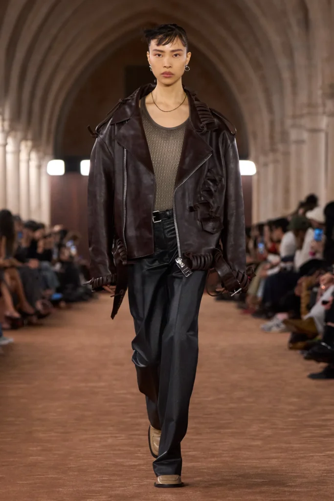 O couro foi protagonista na coleção de Acne Studios SS26 (Reprodução/Acne Studios)
