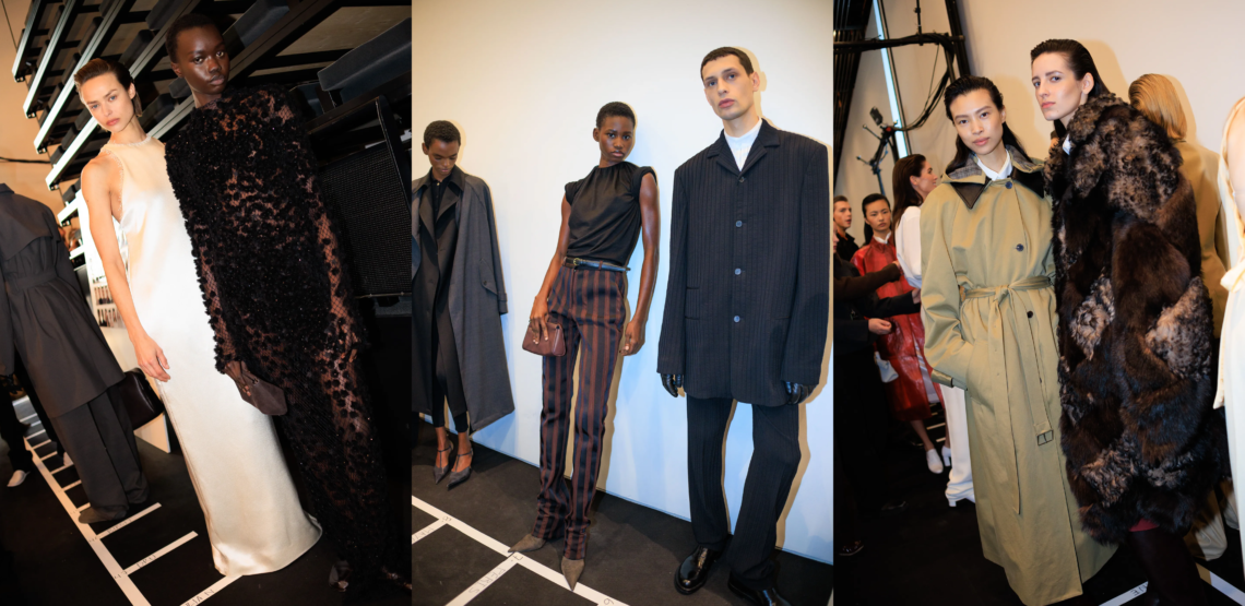 O denim, elemento histórico da Calvin Klein, também teve papel importante. Reinterpretado em cortes mais estruturados e lavagens sofisticadas, o jeans apareceu como símbolo da identidade da marca, conectando gerações e reafirmando sua relevância no cenário atual.