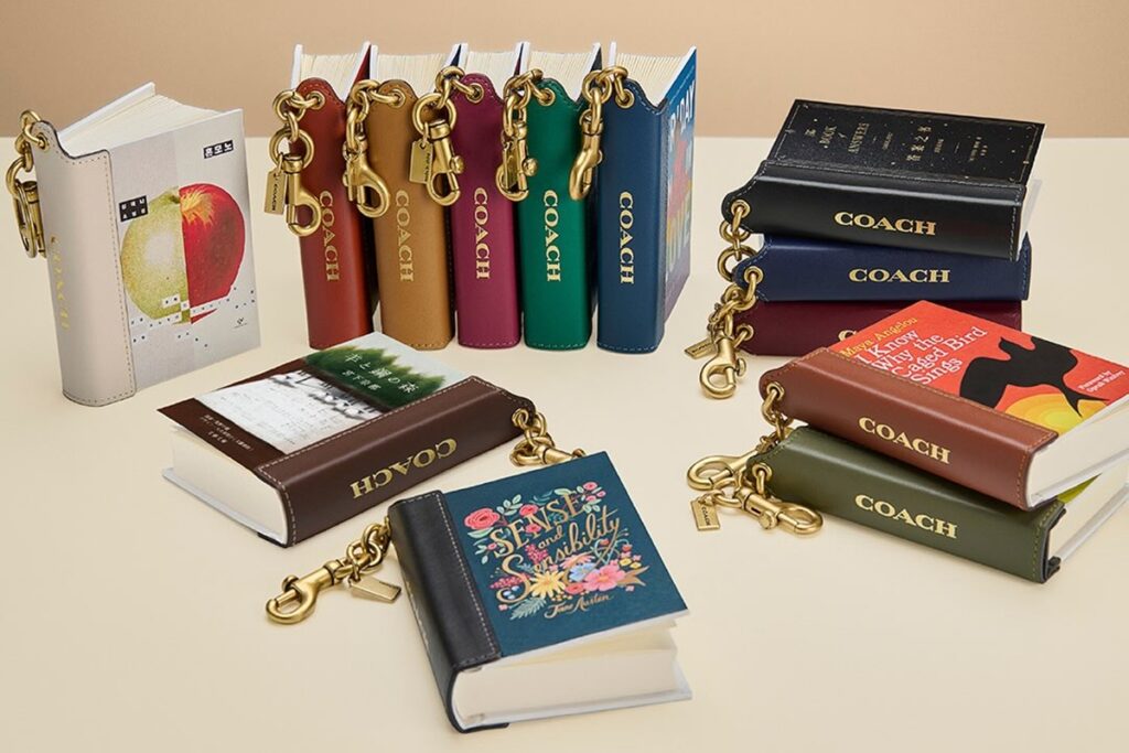 Chamados de Book charms ou “Literatura pendurada na bolsa”, é um chaveiro de livro feito em couro trazendo uma tendência até então nunca vista antes. São livros de verdade que não servem apenas como chaveiro, servem para ler (agora, se você conseguir ler aquelas minis letras, você zerou a vida!). Trata-se de uma criação da Coach com a editora Penguin Random House.