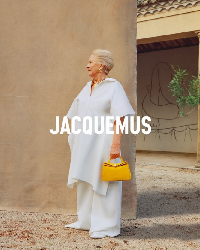 No caso da Jacquemus, a escolha se alinhou diretamente com o conceito da marca. Fundada em 2009, com o objetivo de manter a memória da mãe de Simon Porte viva a mensagem que o fundador desejava passar era a essência das mulheres de sua vida: a classe descontraída sem formalidade e moderna. A decisão de sua avó como a primeira embaixadora prova isso, além de reforçar suas raízes com a família.