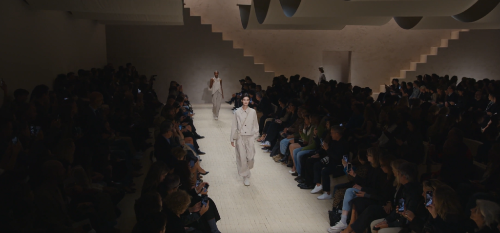 Empório Armani – Última coleção da marca com participação direta de Giorgio Armani antes de sua morte, o desfile foi marcado por fluidez, leveza, tons sóbrios e tecidos acetinados, cada look carregando o toque inconfundível do estilista. E, como não poderia deixar de ser, a atmosfera foi profundamente emocionante.