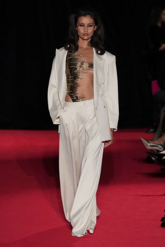 Smith introduziu essa evolução sexy através de uma alfaiataria que utiliza ombros largos e cinturas marcadas para criar uma silhueta mais madura, que exala autoridade e controle.
