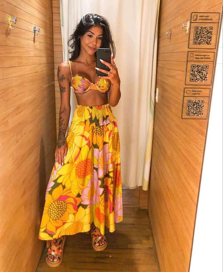 Uma estampa floral com uma cor vibrante, em um vestido ou em um conjunto traz toda uma brasileidade neste look, o tornando leve, fresco e cheio de vida. Perfeito para quem passa a data em clima praiano ou quer fugir completamente do óbvio.