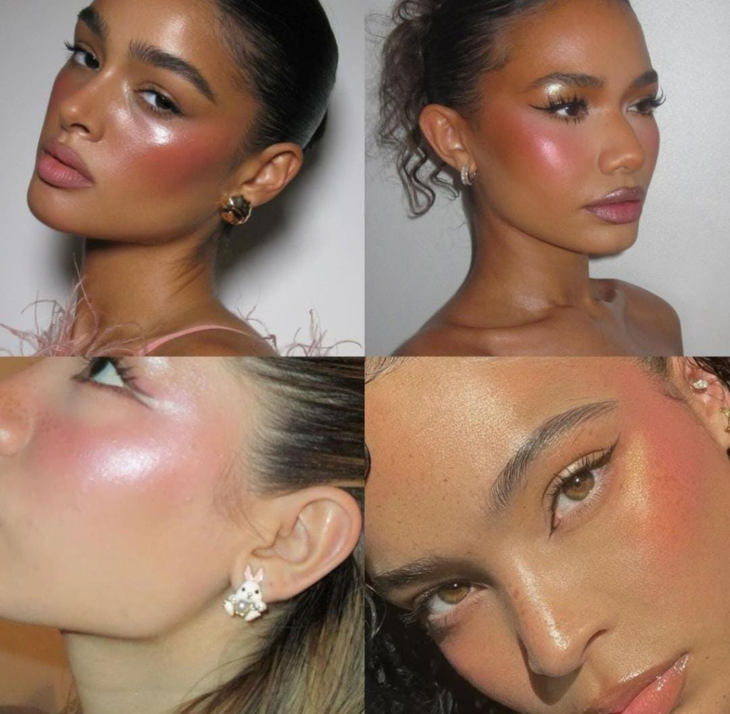 A maquiagem glow complementa perfeitamente a tendência do sereismo, que voltou com força neste verão e traz a pele iluminada, com aquele aspecto fresco e radiante. O iluminador aplicado nas têmporas ou até nas pálpebras faz toda a diferença. Complete com bastante máscara de cílios e um gloss transparente ou levemente cintilante nos lábios. O resultado é um efeito natural, porém impactante. Além disso, é uma maquiagem super prática para sair no bloquinho de manhã, pois garante um visual bonito em poucos minutos.