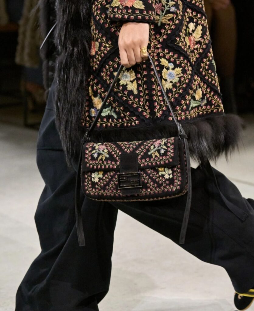 Se, por um lado, o prêt-à-porter estabelece o discurso, por outro, os acessórios consolidam a estratégia – e a Fendi Baguette foi o ponto de ancoragem do desfile.