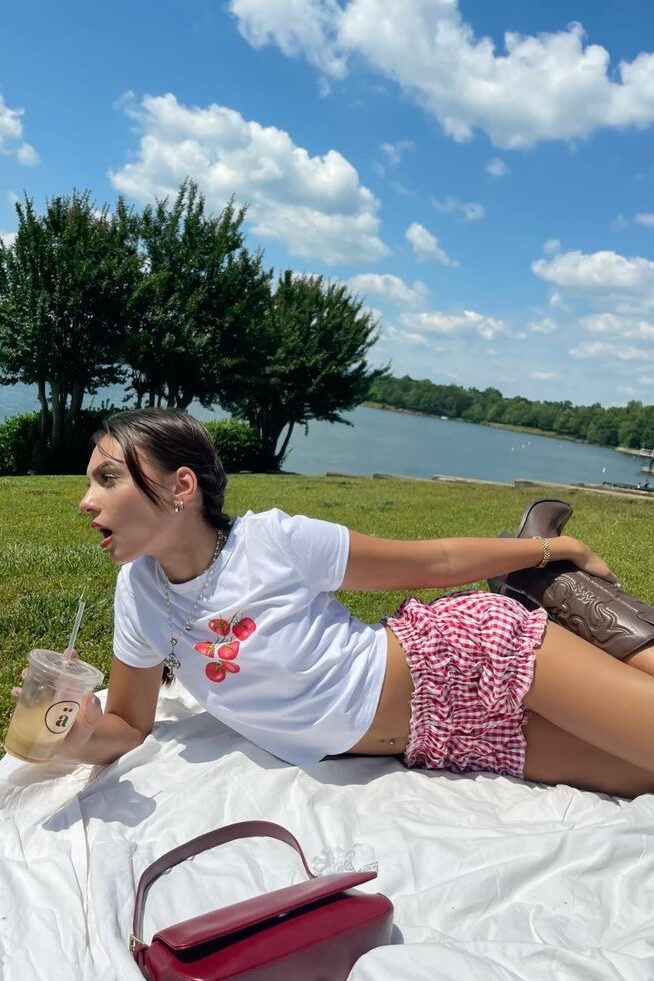 As opções de looks devem ser fresquinhas, leves e soltas. Shortinhos de algodão e blusas soltinhas funcionam muito bem. Cores como vermelho e branco combinam bastante com a ocasião. Cabelo preso em tranças ou com um toque fofo também são ótimas opções.