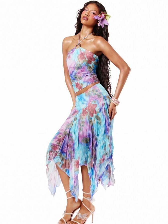 Vestidos coloridos ou em tons delicados, como amarelo manteiga, rosa bebê e lilás, funcionam muito bem. Muitas camadas e fluidez, em comprimentos longos, midi ou curtos, todos combinam com a ocasião. Detalhes de flores nos vestidos trazem o tema de forma lúdica.