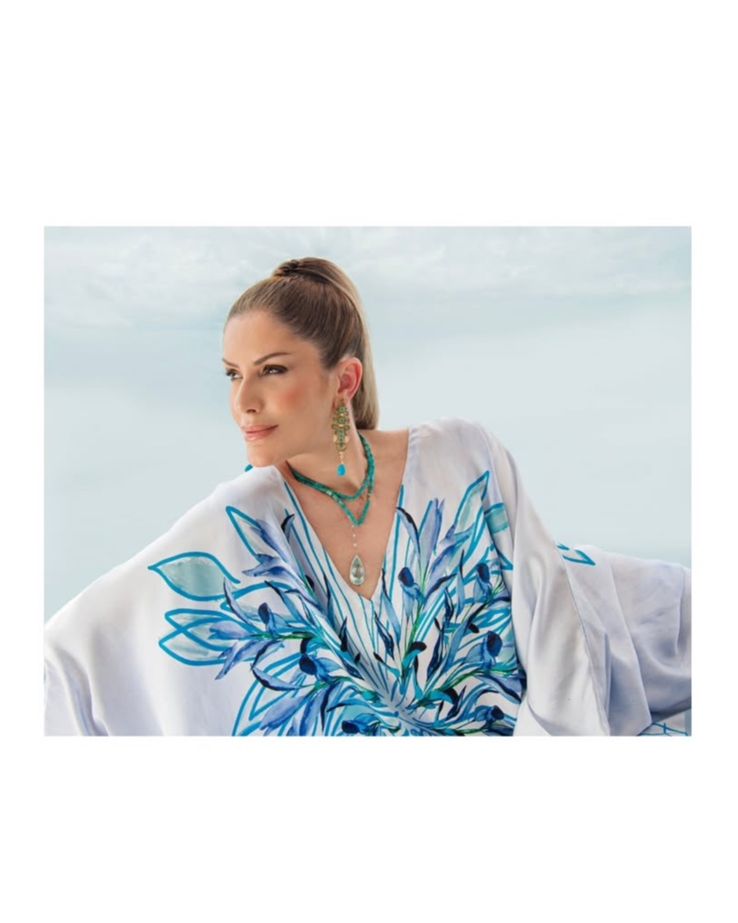A coleção é marcada pela predominância de azul e branco, cores carregadas de significado. O azul simboliza espiritualidade, serenidade e proteção, enquanto o branco remete à purificação, renovação e paz. Juntas, essas cores traduzem visualmente o sincretismo religioso e o imaginário simbólico da celebração.