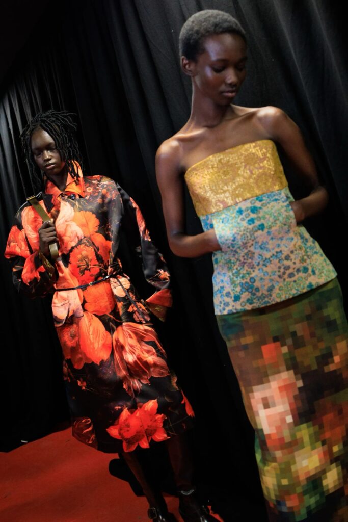 As estampas aparecem como um dos principais recursos da coleção, tratadas quase como lembranças impressas diretamente no tecido. Flores desbotadas e grafismos sobrepostos pareciam se esconder delicadamente debaixo de outros padrões, dando um charme único na coleção.