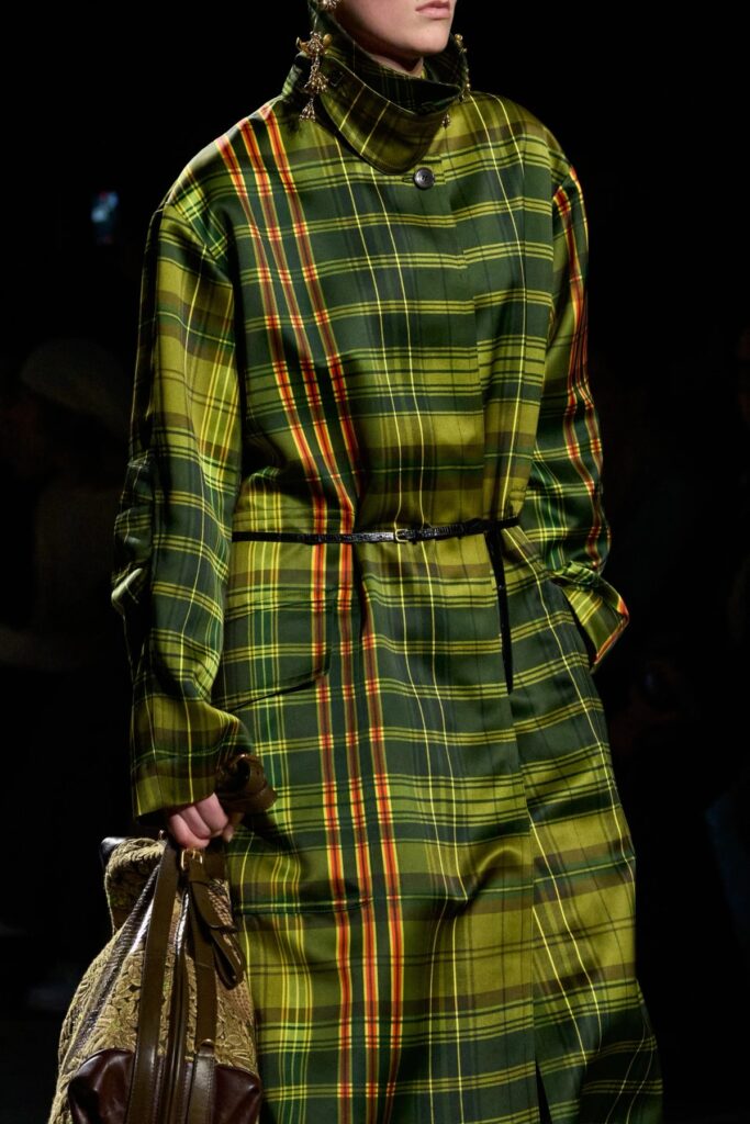Algumas peças principais resumiram o tom acolhedor da da coleção, como por exemplo casacos acolchoados que lembram antigas colchas de cama, os ricos tricôs e os casacos utilitários com um brilho muito discreto.