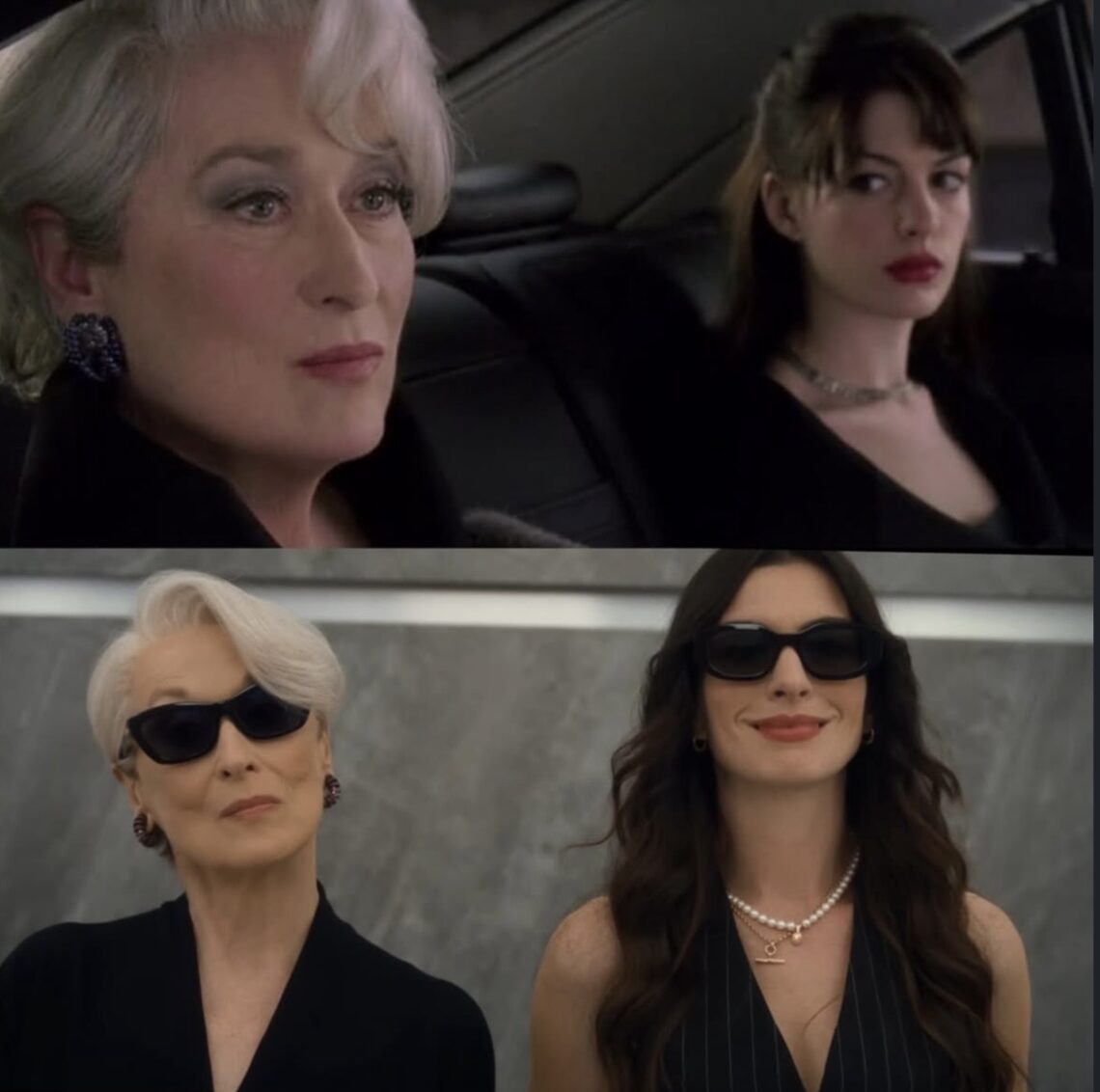 No trailer, vemos cenas que retrocedem e avançam no tempo: a icônica Miranda Priestly de Streep segue dominando os looks, e a chegada de Andy Sachs (Hathaway) ao escritório da revista Runway é recebida com aquele toque de ironia que atravessou gerações.