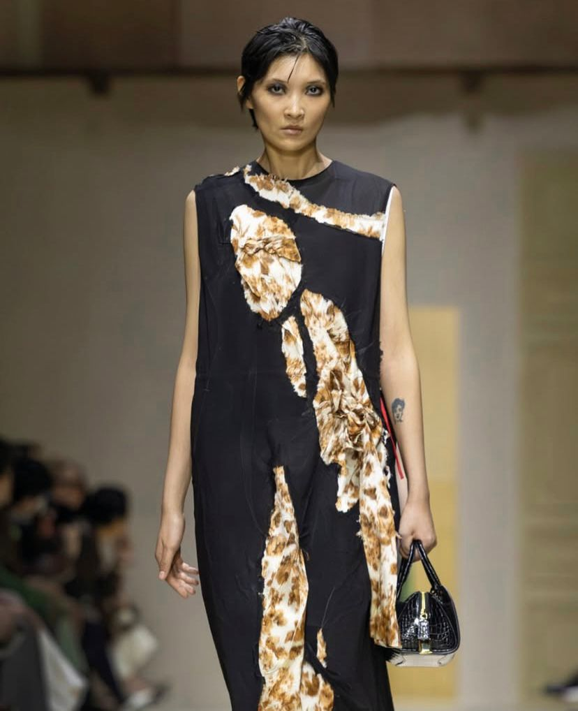 As imperfeições vão de pequenos desgastes em couros a rasgos cada vez maiores e mais óbvios ao longo do desfile. Dessa forma, as marcas do tempo aqui não são escondidas nem remendadas, mas vestidas com orgulho como materialização da memória.