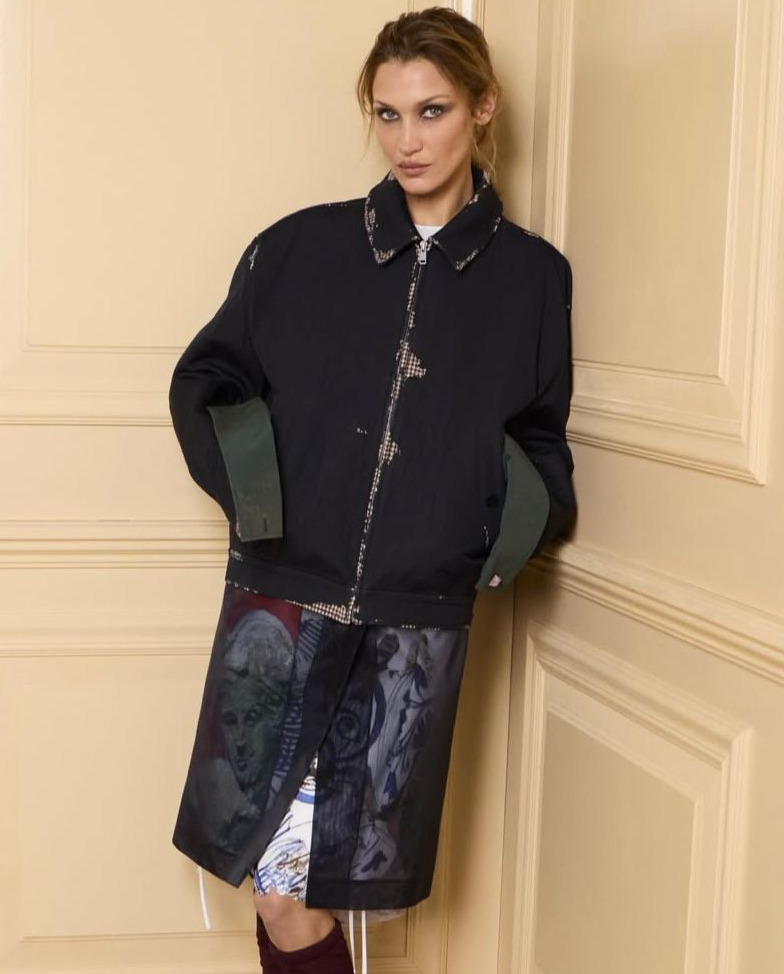 Em um ambiente amplo, com objetos de decoração de séculos passados se sobrepondo nas paredes, a Prada contou uma história em 60 looks com apenas 15 modelos. “Mas como isso é possível?” podem se perguntar. O cast, recheado de estrelas – entre elas, Bella Hadid -, foi organizado para que cada modelo desfilasse quatro visuais.