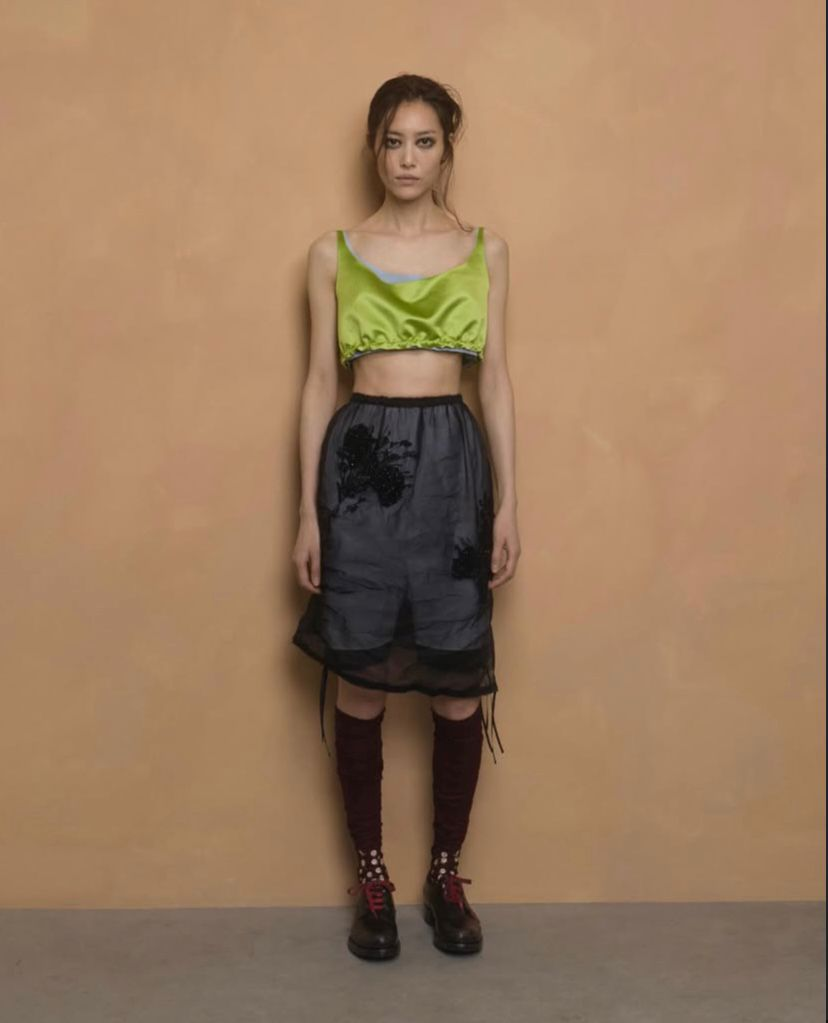 Além disso, o mix de estampas e texturas foi, no mínimo, contraditório. Afinal, somente Miuccia Prada combinaria suéteres com saias de organza bordadas, estampas animal print com flores, e sportswear em um único visual. Mesmo assim, a confusão visual é extremamente intencional, e tudo tem a ver com o enredo proposto, em que as roupas são um reflexo fragmentado da identidade de quem as veste.