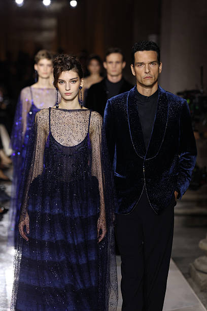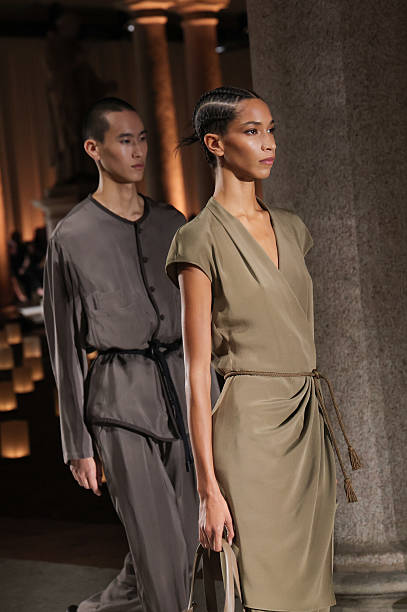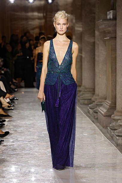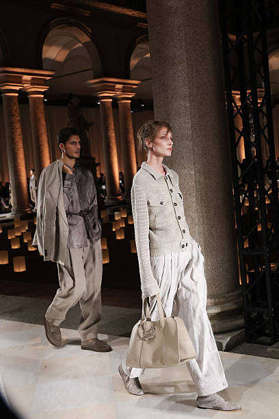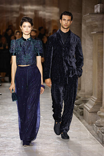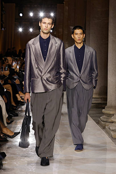 Na Pinacoteca di Brera, em Milão, Armani celebrou 50 anos de carreira. Reafirmou a atemporalidade de sua visão estética. A coleção destacou tons de greige (combinação entre cinza e bege) e azul-marinho. As proporções eram fluidas, com androginia sutil. A sofisticação silenciosa traduziu a essência do estilista.